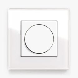A clean and elegant switch in an intriguing and classy material. This single dimmer switch has a frame made of clear glass on a white base, with a slightly raised profile and the well-proportioned modernist shape of Giraโs Esprit range.
